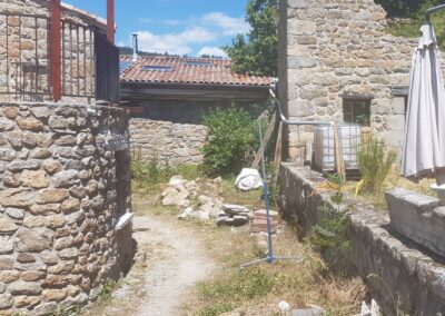 À l’orée d’un hameau dynamique qui compte une vingtaine d’âmes, le gîte fait partie d’un groupement de 2 maisons. D’abord, l’ancienne grange devenue une habitation au fil du temps et destinée à être notre maison. Ensuite, la maison d’époque destinée à devenir un gîte. Les 2 baignaient dans leur jus lorsque nous les avons achetées en 2018, notamment le gîte qui avait encore son sol en lauzes.