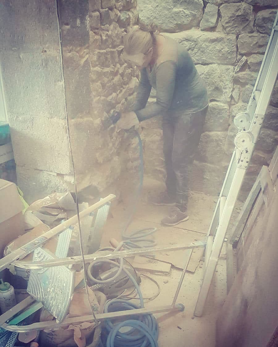 Nous nous sommes lancés dans l’aventure de la rénovation sans aucune expérience. D’un autre côté, nous avions la motivation et la volonté de faire perdurer l’âme et le cachet de la bâtisse. Garder ce qui nous a tant séduit lorsque nous l’avions visitée. Alors, à nous Internet et les tutos !
